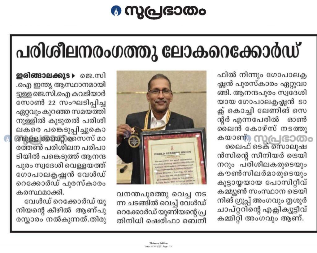 ജീവിതയാത്രയിലുണ്ടാകുന്ന ഓരോ അനുഭവവും ഓരോ പാഠമാണ്. ആ പാഠങ്ങളെ ലക്ഷ്യബോധത്തോടെ ചേര്ത്തുപിടിച്ച് സമൂഹത്തിന് വെളിച്ചം പകരുന്നവര് വിരളമാണ്. അത്തരത്തില്, തന്റെ ഇരുപത്തിയഞ്ച് വര്ഷത്തോളം നീണ്ട കോര്പ്പറേറ്റ് അനുഭവസമ്പത്തിനെ പരിശീലനമെന്ന ദൗത്യത്തിലേക്ക് സമന്വയിപ്പിക്കുകയാണ് തൃശൂര് സ്വദേശിയായ ഗോപാലകൃഷ്ണന്. കോവിഡും തുടര്ന്നുണ്ടായ പ്രതിസന്ധികളുമായിരുന്നു Corporate Trainer, Career Mentor & Financial Advisor എന്നീ മേഖലയിലേക്കുള്ള വാതിലുകള് തുറക്കാന് ഗോപാലകൃഷ്ണന് സാധിച്ചത്.